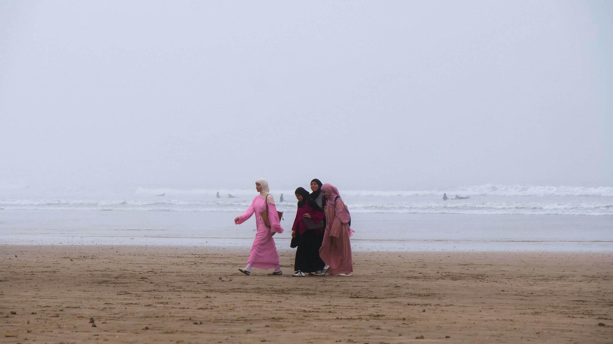 Anche Essaouira, alla mia destra, era nascosta dalla nebbia: si vedevano i profili offuscati delle navi da pesca tirate su in secca, sul molo del porto.