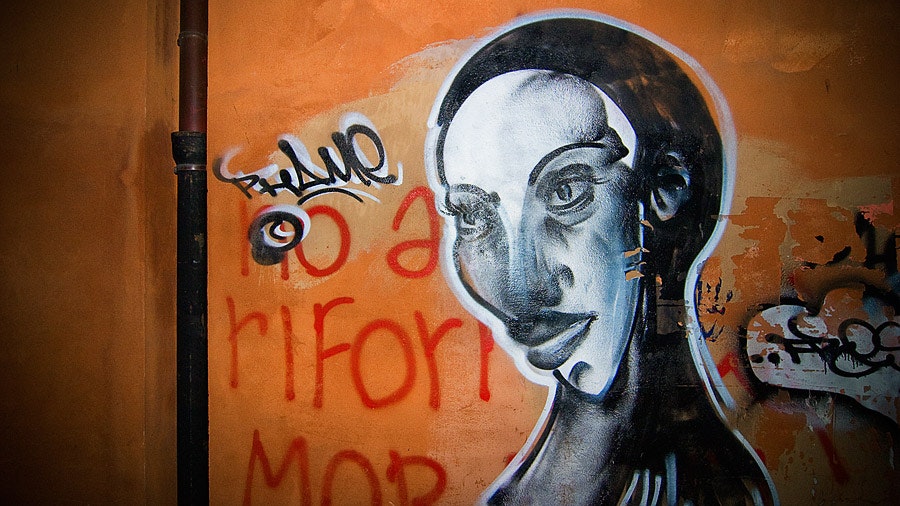 È per qualche strana sfasatura del cervello che ho associato la Gioconda a questo graffito raccolto a Pisa, davvero poco distante dalla mano.